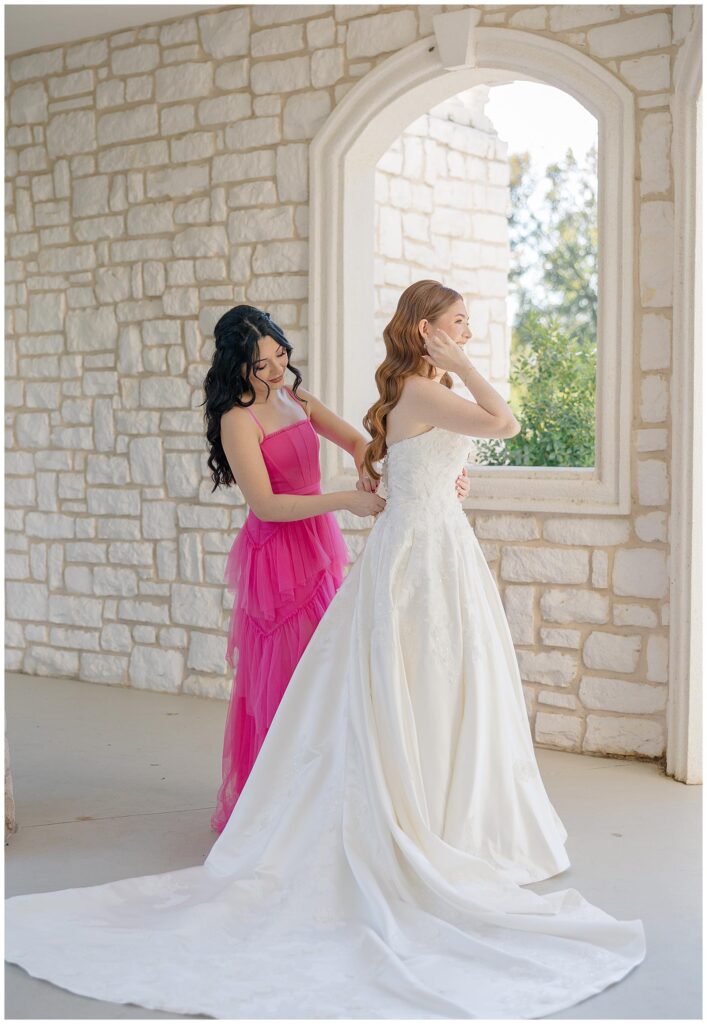 This sweet couple originally dreamed of a romantic garden wedding outdoors — breezy florals, golden light, the whole fairytale. And we almost had it… until Texas decided to show up with a surprise cold front (classic 😅). But here’s the thing: it didn’t change a single ounce of joy.